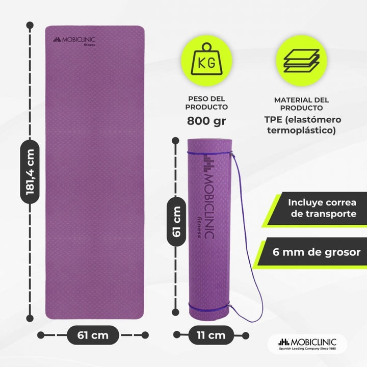 TPE (thermoplastisches Elastomer) ist ein sehr flexibles Material, ideal für Yoga- und Pilates-Stretching, das mehrfach gedehnt werden kann und Haltbarkeit, Qualität und Widerstandsfähigkeit garantiert. Darüber hinaus ist dieses Material umweltfreundlicher als andere Materialien, die in traditionellen Yogamatten verwendet werden, wie PVC oder NBR.