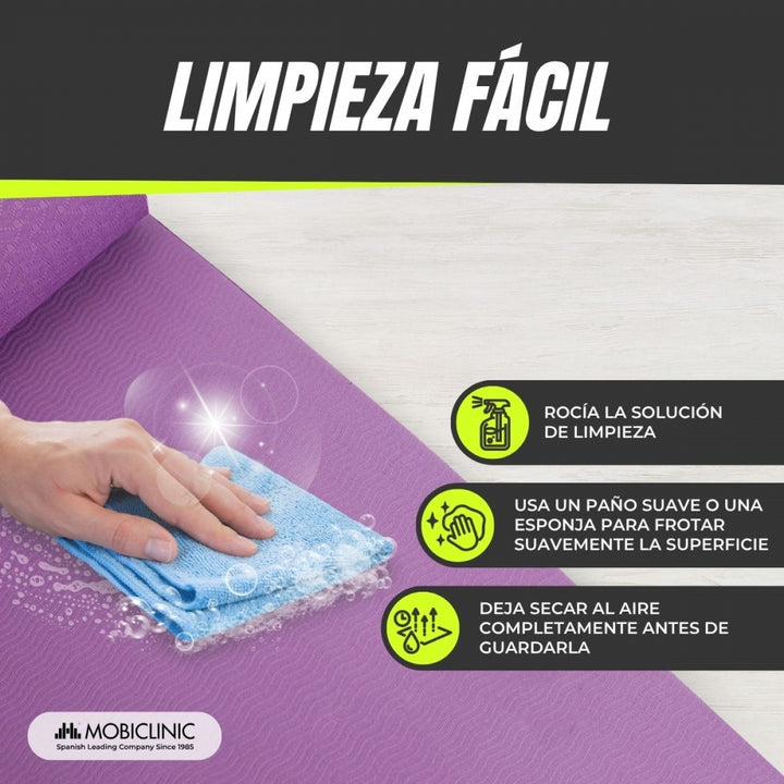 Nach dem Training ist diese Matte sehr leicht zu reinigen, da sie einfach mit einem Tuch mit Seife und Wasser abgewischt, dann abgespült und schließlich mit einem trockenen Tuch abgetrocknet wird. Auf diese Weise können Sie Ihre Matte so gut wie am ersten Tag erhalten.