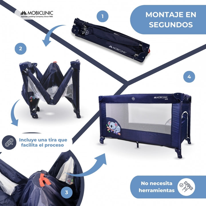 Reisebett Rollen | Tragbar | Zusammenklappbar | Widerstandsfähig | Atmungsaktives Gewebe | Tragetasche | Blau| Mofli |Mobiclinic