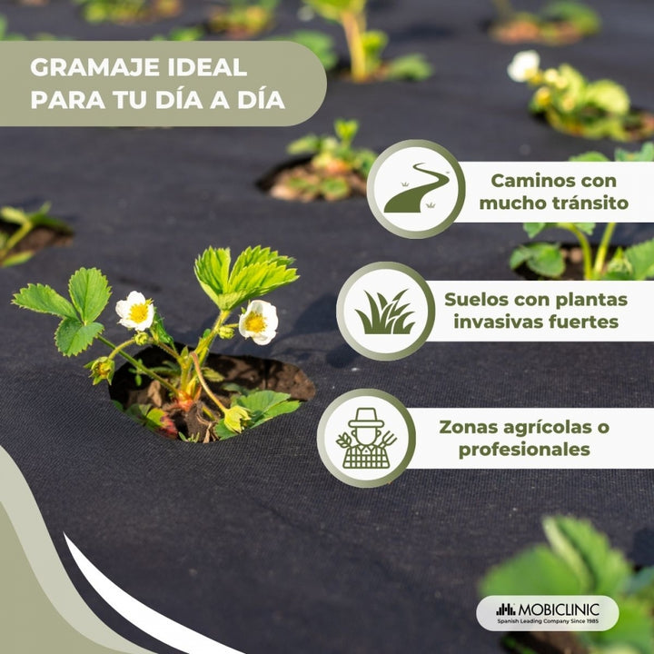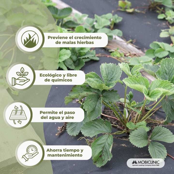 Su tejido transpirable y permeabilidad permite el paso del agua y aire, facilitando el mantenimiento de la humedad en suelos sin afectar a riego habitual. Además, es resistente a los rayos UV por lo que soporta la exposición directa al sol sin deteriorarse. Su instalación es sencilla y puede cortarse con tijera para adaptarse a diferentes tamaño según la necesidad.