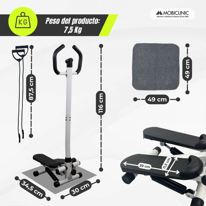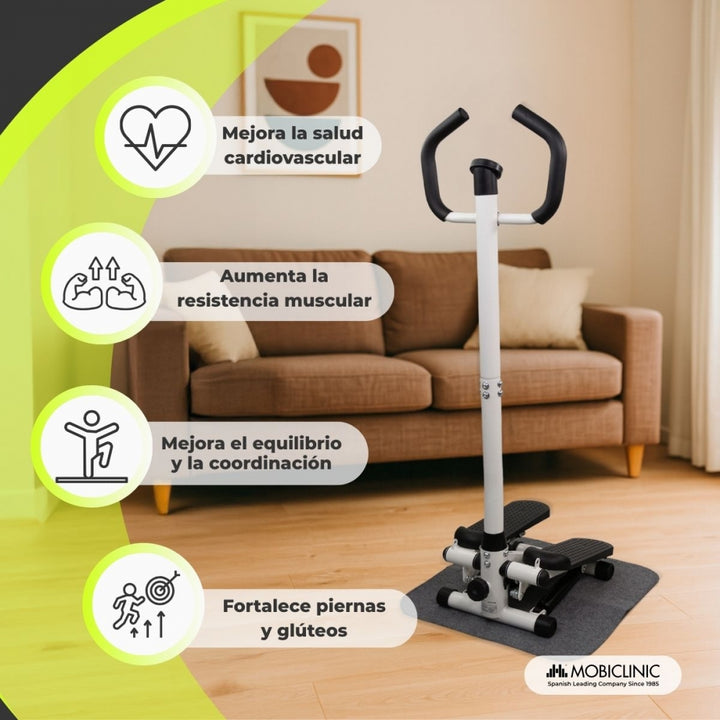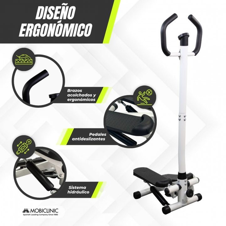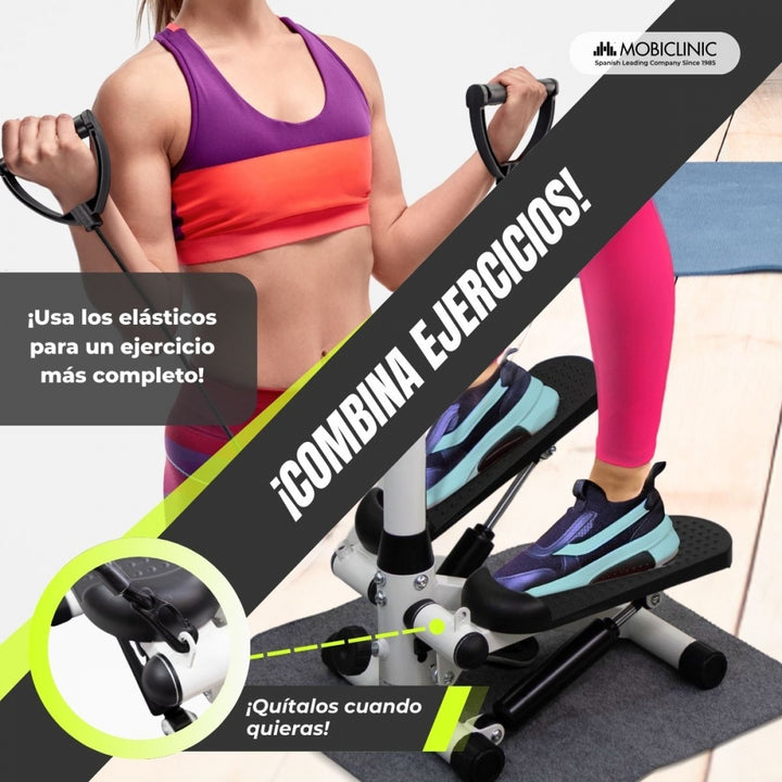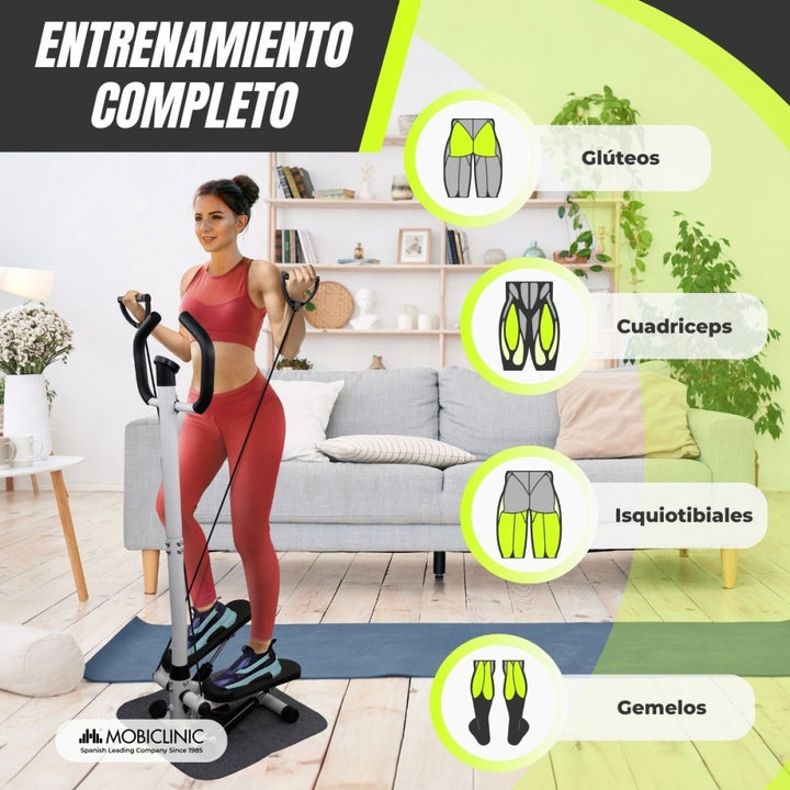 La máquina de steps con brazos Step-Pro es la mejor opción para quienes buscan mantenerse en forma desde casa. Su estructura permite trabajar piernas, glúteos y brazos simultáneamente, combinando ejercicio cardiovascular y tonificación muscular.