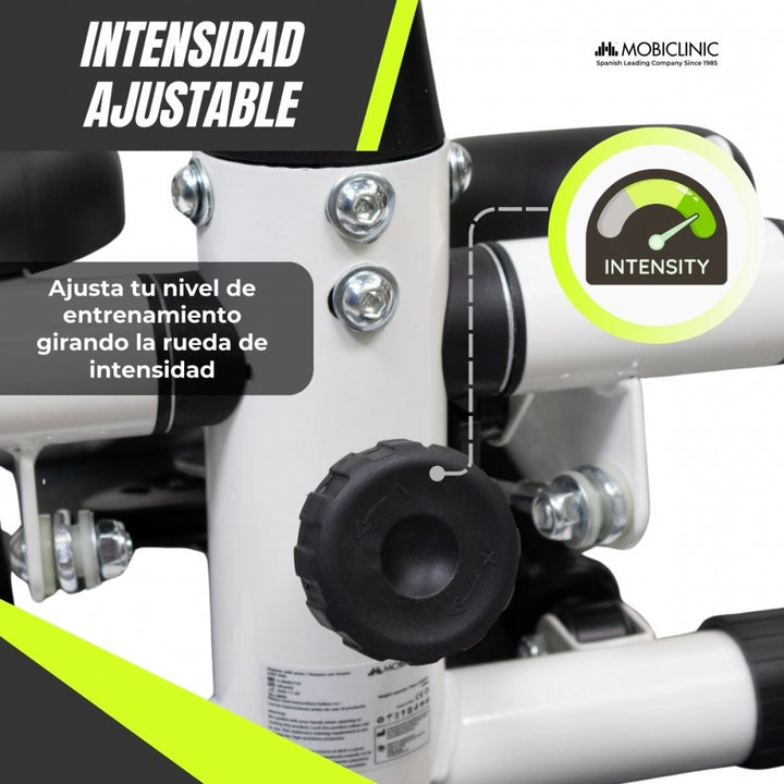 Gracias a sus brazos móviles ofrece un entrenamiento completo que mejora la coordinación y la resistencia mientras que ayuda a quemar calorías. Su diseño ergonómico ofrece un movimiento fluido, minimizando el impacto en articulaciones. Dispone de una pantalla LCD que muestra de forma automática los siguientes valores: tiempo de entrenamiento, calorías estimadas, pasos acumulados y pasos por minuto. Cuenta con apagado automático tras 4 segundos sin movimientos y función auto scan que alterna la información cada 4 segundos.
