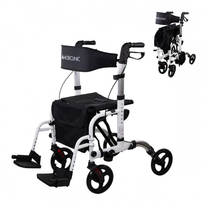 - Inklusive: klappbare Fußstützen, umkehrbare Rückenlehne, Sicherheitsbremsen, Einkaufstasche und Stockhalter