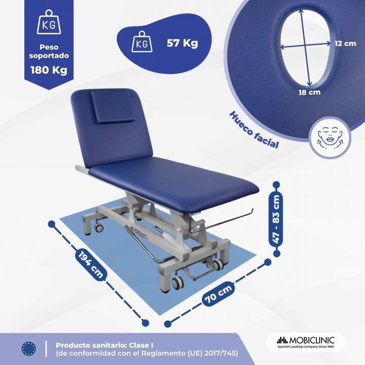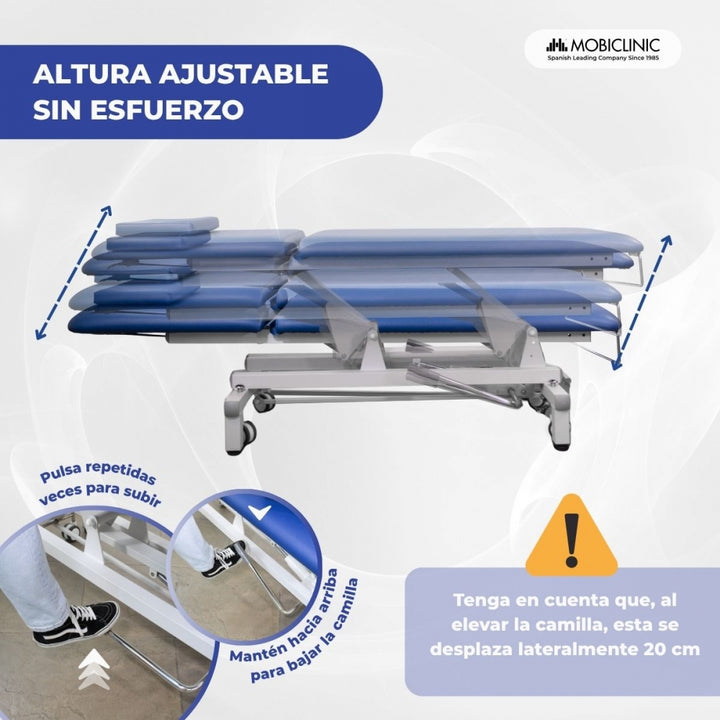 Die hydraulische Trage ist eine praktische, robuste und vielseitige Lösung für Kliniken, Physiotherapiezentren oder Schönheitspraxen. Sie wurde entwickelt, um dem Patienten maximalen Komfort und dem Fachmann eine einfache Handhabung zu bieten und kombiniert ein Höhenverstellsystem mit einer verstellbaren Rückenlehne.