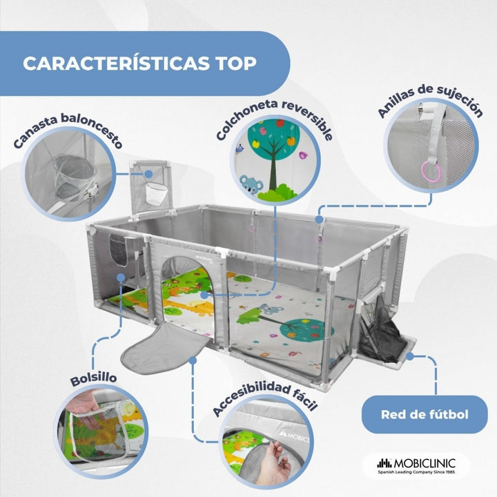 Der Kidland-Spielplatz ist ein Ort, der Spiel, Entwicklung und Spaß für die Kleinen in einem einzigen Produkt vereint. Sein multifunktionales Design mit integriertem Basketballkorb und Fußballnetz fördert die körperliche Aktivität von Kindern ab 6 Monaten.